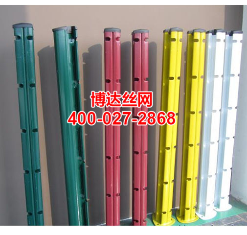 桃型(xíng)立柱護欄網多是由桃形立柱和三角折彎護(hù)欄網組合,網片絲徑3.5~8mm 網孔多為長方形(xíng):常用7.5*15cm 網片高度1,。8m~~2.5m,長度多為3m,立柱尺寸:常用5cm*7cm 7cm*10cm 厚度(dù)1mm ,表麵多浸塑處理,顏色:立柱和網片多用不(bú)同(tóng)顏色,如黃色,藍色(sè),白色,紅色等 兩兩組合,更顯美觀。立柱特征:立柱壁厚為1.00mm,板材成型通過冷彎和冷軋。其結構簡單,形狀為規則的半橢圓型,安裝方便。柱體上的掛鉤由(yóu)缺口分為幾部分並沿柱體縱向均勻地分布於柱體(tǐ)兩側(cè)。掛鉤(gōu)板內(nèi)彎成拱型與橢圓型柱體的直(zhí)邊相切,有效的(de)防止(zhǐ)了被撬開,保證了護欄的安全性。